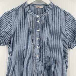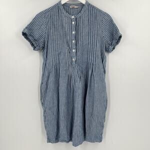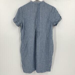 Faherty Gemina 100% Linen Mini Shirt Dress Pintuck Striped Blue White Size Small