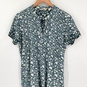 Faherty Gemina Dress Indigo Echo Floral Linen Blend Pockets Women XS Blue White