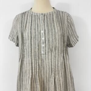 Faherty Gemina Mini Dress Sierra Stripe Linen Blend Pintuck M