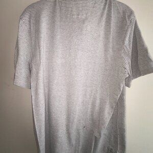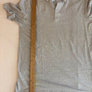 Stylish Faherty polo with subtle gray stripes. Comfortable and versatile for any occasion.