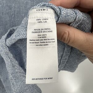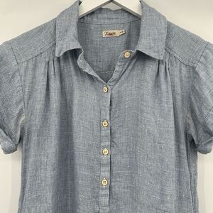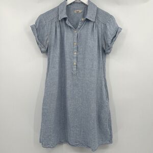 Faherty Hana 100% Linen Shirt Dress Blue Basket Weave Button Collared Size XS