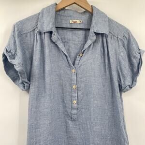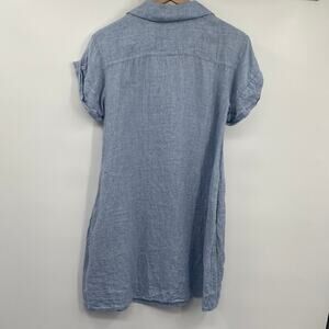 Faherty Hana Linen Mini Shift Shirt Dress Collared Neckline Short Sleeve Blue S