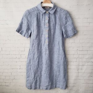 Faherty Hana Shirt Dress Size XS Blue Basket Weave 100% Linen Short Sleeve