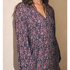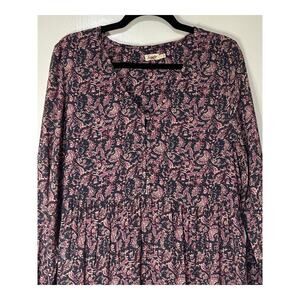 Faherty Isabella Long Sleeve Tiered Midi Dress Fiona Block Print Sz Medium NWOT
