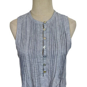 Faherty Isha 100% Linen Dress Blue Mini Stripe Pintuck WDS2119-BMT Bestseller