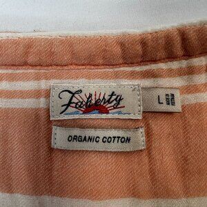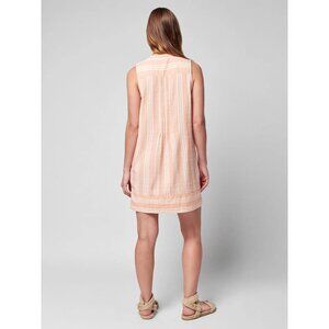 Faherty Isha Dress in Sepia Neutral Stripe Peach Organic Cotton Casual Mini LG
