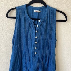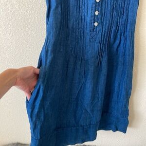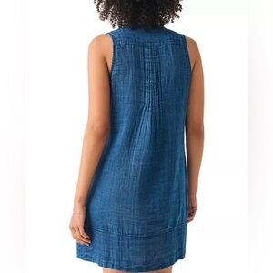 Faherty Isha Linen Shirt Dress XS Indigo Lagenlook Beachy Minimalist Boho Dress
