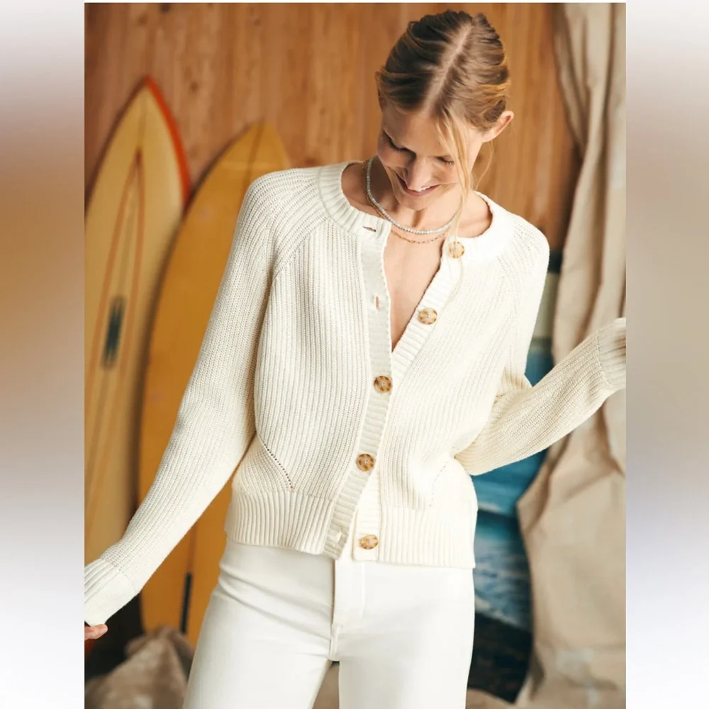 Faherty Ivory Ribbed Button Cardigan