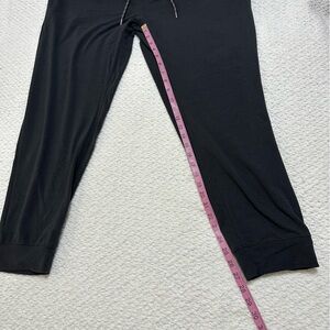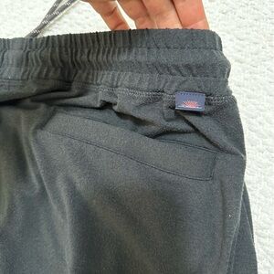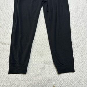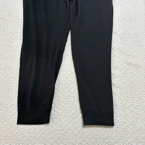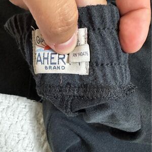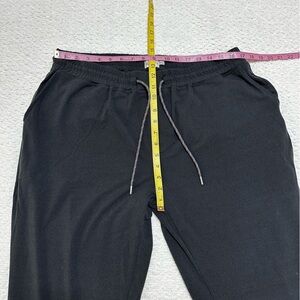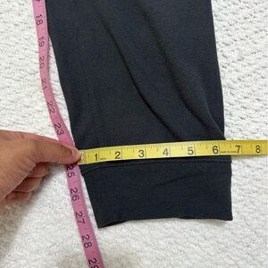 Experience ultimate comfort with Faherty's joggers, designed with a relaxed fit and elastic waistband for a perfect fit. These sweatpants are ideal for both lounging and casual outings. Crafted from a soft, knit fabric, they offer a cozy feel and versatile style. Please see photos for indications of use and measurements. Button on back pocket came loose from fabric, see pics.