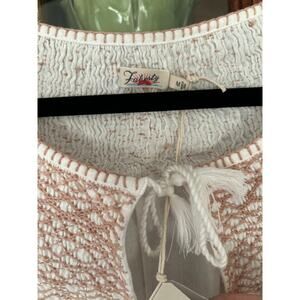 * Design details: hand smocked neckline with blanket stitch at crew neckline, hand smocking at sleeve cuffs, blouson sleeves, delicate braided drawcord and tassels at front