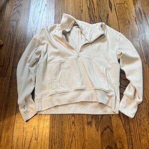 Detail: Quarter zip pullover with kangaroo pocket.