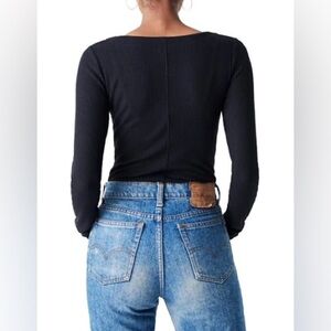 Faherty Legend Rib Monroe Bodysuit In Black XL
