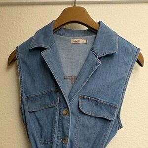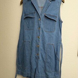 Faherty Linen Denim Romper - Sunlit Cove Wash - size 2