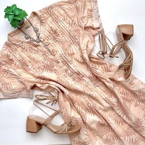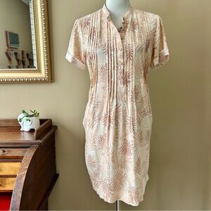 Faherty Linen Gemina Shift Dress Blue Blush Pink Palm Print Short Sleeve Size S
