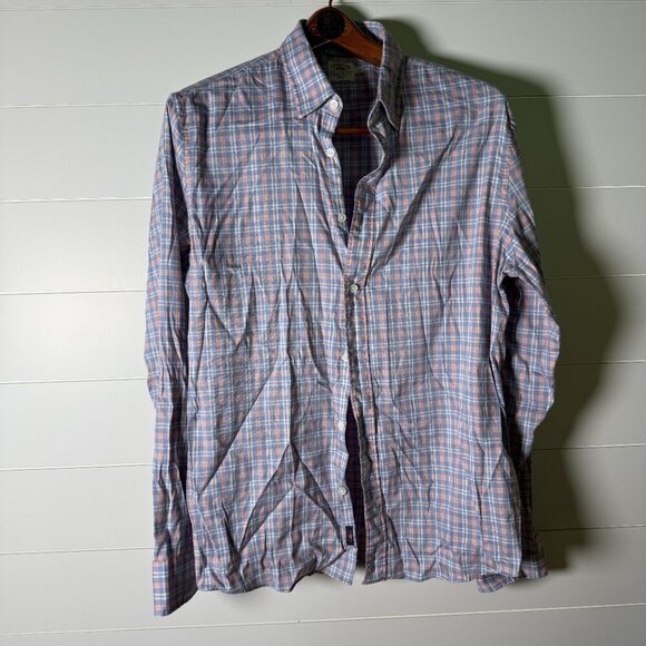 Faherty Long Sleeve Button Up Blue, Pink, White Plaid Size Large