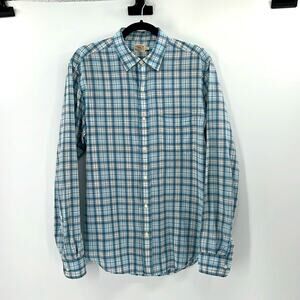 Faherty Long Sleeve Lightweight Button Down Shirt - Blue Plaid - Medium