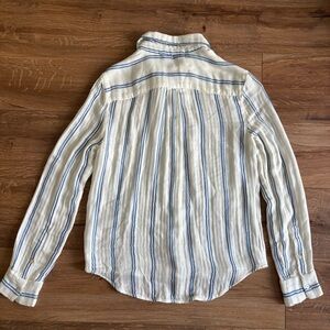 Faherty Long-sleeve button up shirt, striped light blue and white.