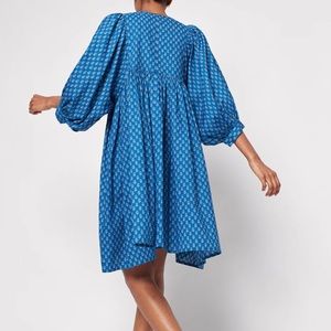 This floaty mini dress is cut for lots of movement to add a spring to your step. Loose and relaxed, thoughtful details like shirring at the bodice and blouson sleeves, give it a charming and flattering touch that will make it a favorite in your weekly rotation.