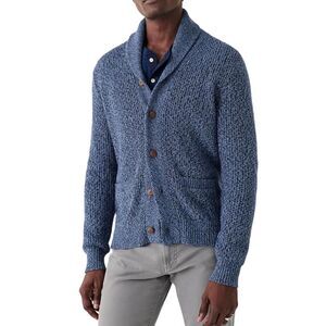 • Details include a shawl collar, button front, rib cuffs, and hem, along with front welt pockets, adding both style and functionality to this men's sweater.