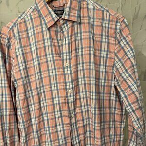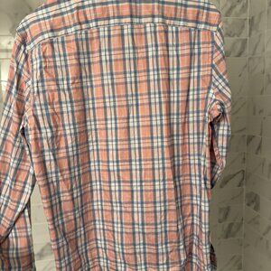 Lightly worn Faherty button-down in size Medium. Features a soft, casual color blend of light orange, white, and blue.