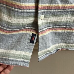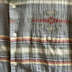 Faherty Men’s Doug Good Feather Button Down Short Sleeve Shirt. 100% organic cotton. Nature inspired. Size Medium