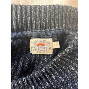 Faherty Mens Large Sweater Wool Cotton Blend Full Zip Blue Indigo Cable Knit