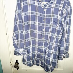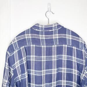 Faherty Men’s Linen Laguna Shirt Button Down Collared Jetty Plaid Blue Medium M