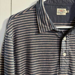 Faherty Men’s Long Sleeve Striped Cotton Polo Shirt Size Large