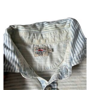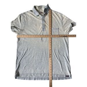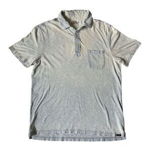 Faherty Mens Size Large Polo Shirt Pocket Blue White Striped