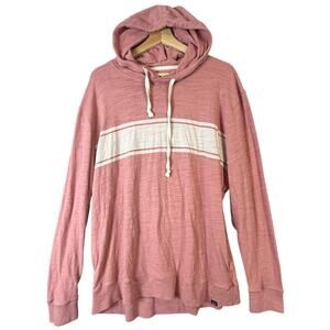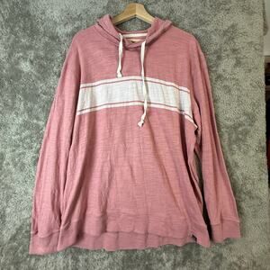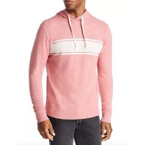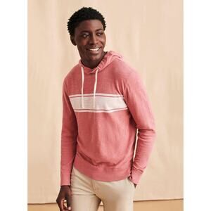 Faherty Men's Surf Stripe Slub Pullover Hoodie Shirt Pink Nantucket Red XXL 2XL