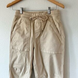 features: elastic drawstring waist, functional front and back pockets, cotton blend