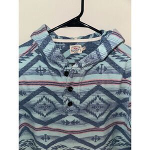 Faherty Mens Aztec Tribal Blue Poncho Hoodie Size Small