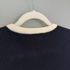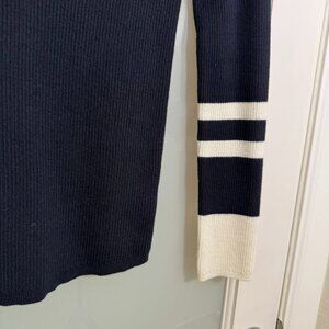 Faherty Mikki Henley Sweater Small | Navy with Cream Trim & Stripes | Ribbed Kni