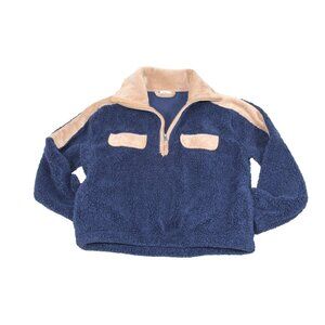$198 Faherty Mix Cord Fleece Pullover 1/4 quarter Zip sweatshirt Navy Tan Women's Size S Sweater Jacket Shirt small. Excellent pre owned gently worn condition. Sherpa still fluffy and soft. Cleaned and ready to wear. Measures 22" chest and 21.5" length. Fast professional shipping. F 10/6/2025