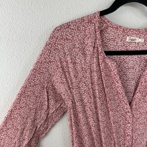 Faherty Montara Leaf Batik Long Sleeve Dress Pink Floral Casual Boho Women Small