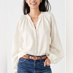Faherty Naomi Romantic Soft Linen Blend Long Sleeve Poet Sustainable Blouse.