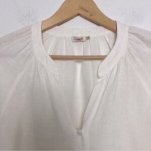 Faherty Naomi Romantic Soft Linen Blend Long Sleeve Poet Blouse Neutral Preppy