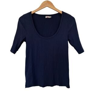 Faherty Navy Blue Ribbed 1/2 Sleeve Shirt Sz L