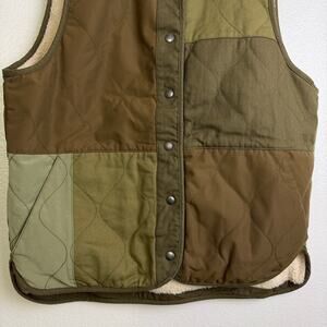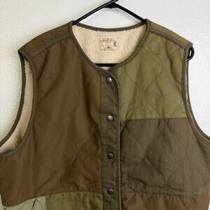Faherty Oak Patchwork Vest Womens L/XL Brown Fleece Lined Snap Outdoor Camp NWOT