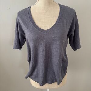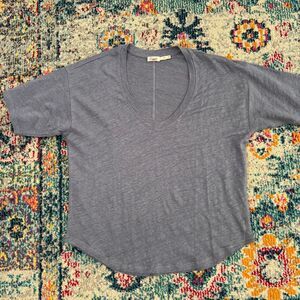Faherty Oceanside Blue Linen V-Neck Tee Women's XS Casual Beach Boho