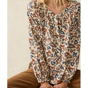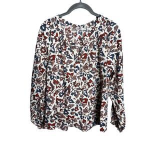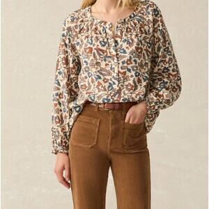 Faherty Odette Blouse Size XS Linen Blend Ginger Maplewood Floral