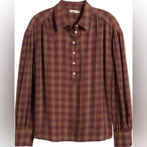 Faherty Olli Check Button Down women Shirt color: Mulberry Plaid Size S