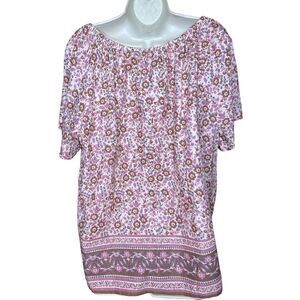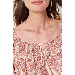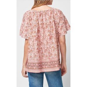 Faherty Organic Cotton Florence Peasant Top in Earth Block Print NWT Size Small