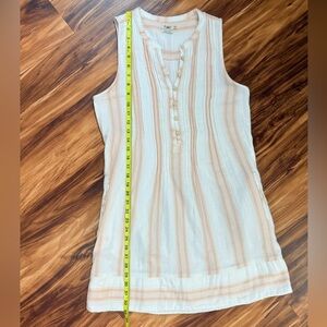 Amazingly soft organic cotton pull over dress by Faherty. Muted earth tones with wooden button down button front. This dress has been well cared for showing no damage or excessive wash wear. Size small Excellent preowned condition