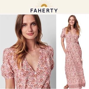 Faherty Orinda Maxi Dress Bohemian Style With Tie Waist Size XS
