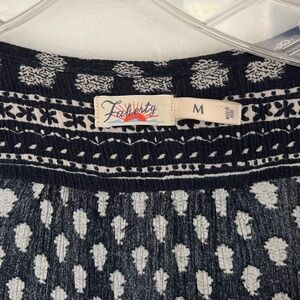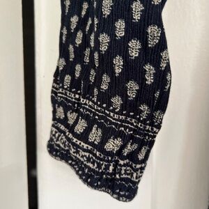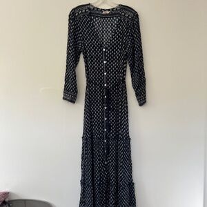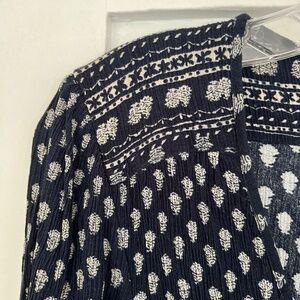 Faherty Orinda Maxi Dress Navy Block Print pattern robe belt Crinkle fabric Med.