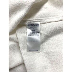 Elevate your wardrobe with this stunning Faherty blouse, perfect for any occasion. The white 100% organic cotton fabric is breathable and lightweight, making it suitable for all seasons. The long puff sleeves and V-neckline with tasseled and embroidered accents add a bohemian and classic touch to the relaxed fit. This peasant-style blouse features a tie closure and is perfect for travel, workwear, or casual occasions. The size is L and the fabric type is woven. The blouse is ideal for women who love the bohemian, classic, and peasant themes. It is suitable for any season, including winter, summer, fall, and spring. Made in India, this blouse is a must-have for any fashion-conscious woman.