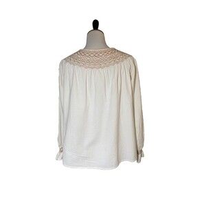 Faherty Peasant Blouse Womens L White Laura Embroidered Long Sleeve Boho Top