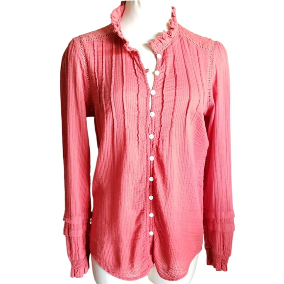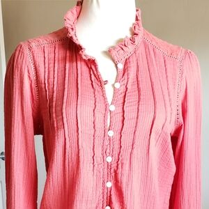 Faherty Pink Ruffle Blouse