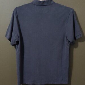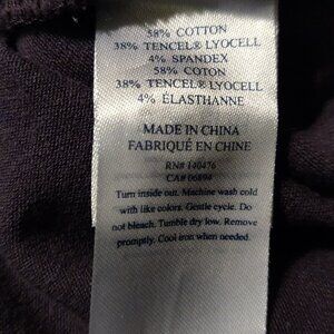 good preowned condition length measures 30.5 in pit to pit at side seams 24.25 in 58% cotton 38% tencel lyocell 4% spandex color is grey (can look blue in certain lighting)